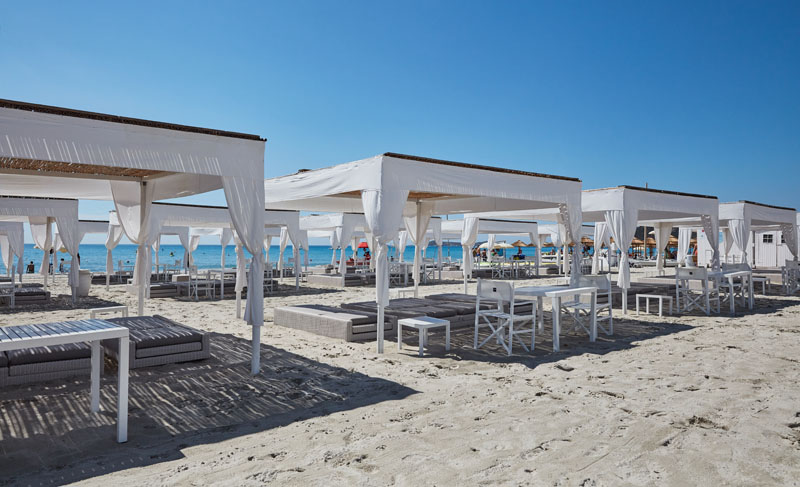 Az üdülő előtt húzódik Olaszország egyik leggyönyörűbb, finom, fehér homokú partszakasza, ahol